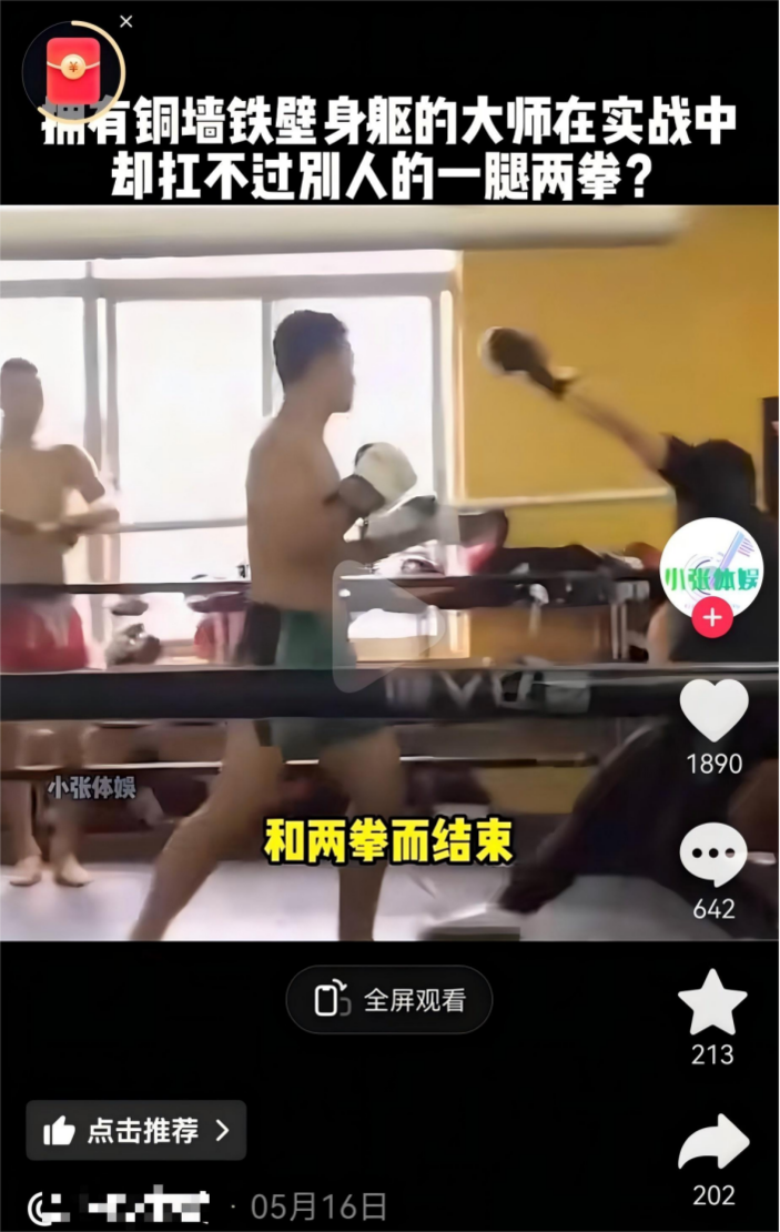 但其他被打的传武老师可能没这么幸运了,形象一旦塌了,生意就没了。