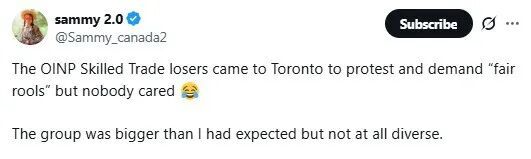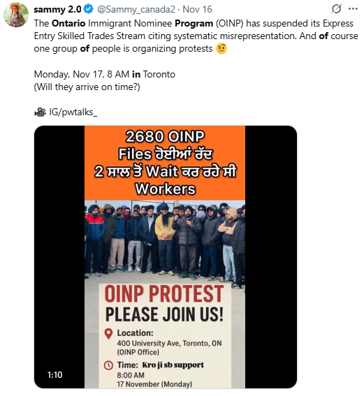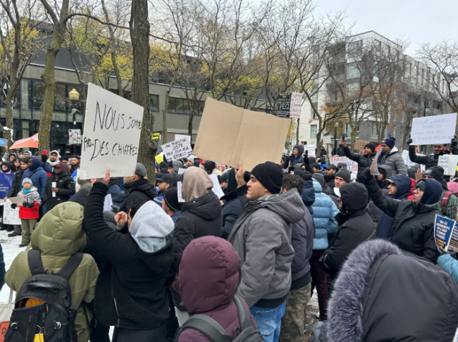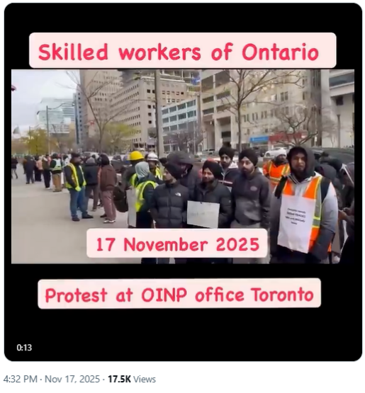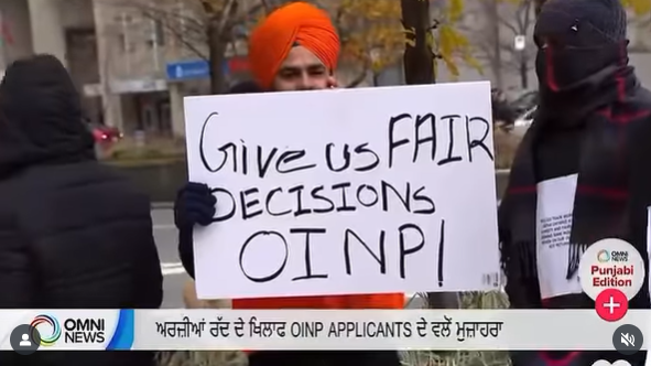 本周一(11月17日),约150名受影响的申请者聚集在多伦多ONIP办公室外抗议,高举标语,呼吁政府撤回决定。