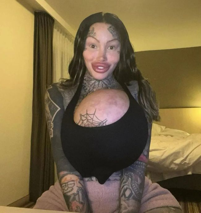 她终于肯取出胸部假体,还计划把脸颊和嘴唇的填充物也都溶解掉,可还没等彻底回归自然,去年,她又忍不住开始了新一轮的极端改造,把自己整个上半身都纹满了黑色……