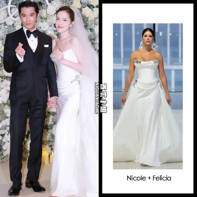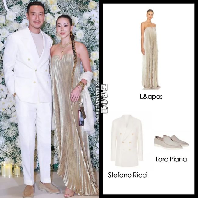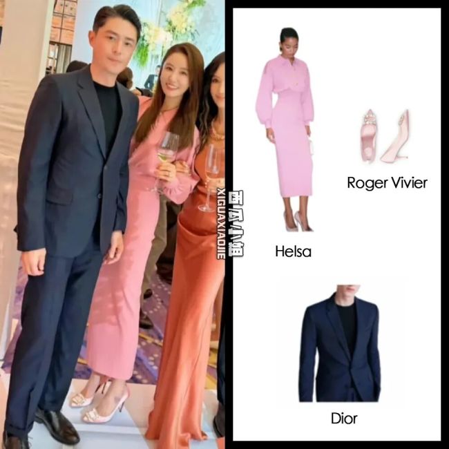 我们最熟悉的就是林心如和霍建华夫妇。林心如一身粉红色,但是挡不住的贵气逼人,霍建华是一如既往的老干部Dior西装。