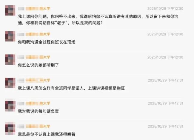 在帖子中,学生说她“上课特别刻薄”“把没礼貌当成幽默”“觉得自己是个女强人,就喜欢拿老师的身份去压人,训话”,最后,学生还评价了一句“其实(她这种行为)很搞笑”。