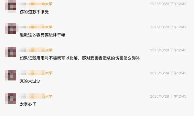 大学生都是成年人了,得对自己做过的事、说过的话负责,这是大学教育的第一课,不是吗?