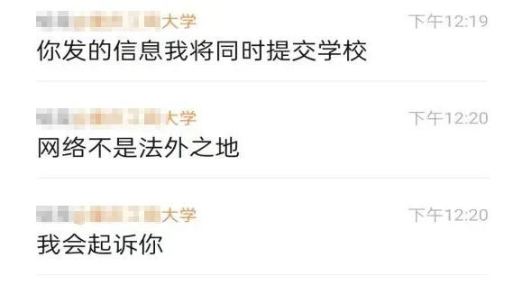 “你发的信息我将同时提交学校,网络不是法外之地。”