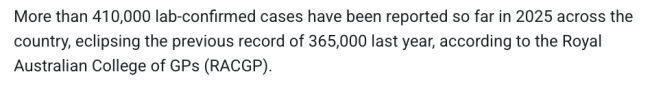 根据官方数据显示,澳洲流感感染人数已经超过41万人,再次创下新纪录!比去年的36.5万上涨了10%以上!