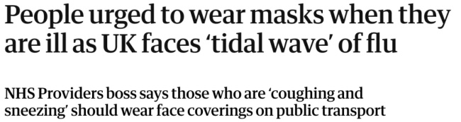 同时,英国卫生部还建议,如果出现感冒症状,也要在公共场所佩戴口罩,避免更多人被传染。