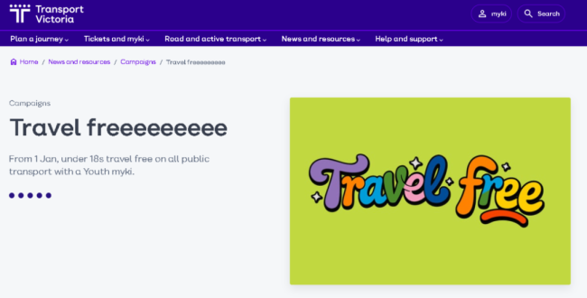 (网址:https://transport.vic.gov.au/news-and-resources/campaigns/travel-freeeeeeeee)