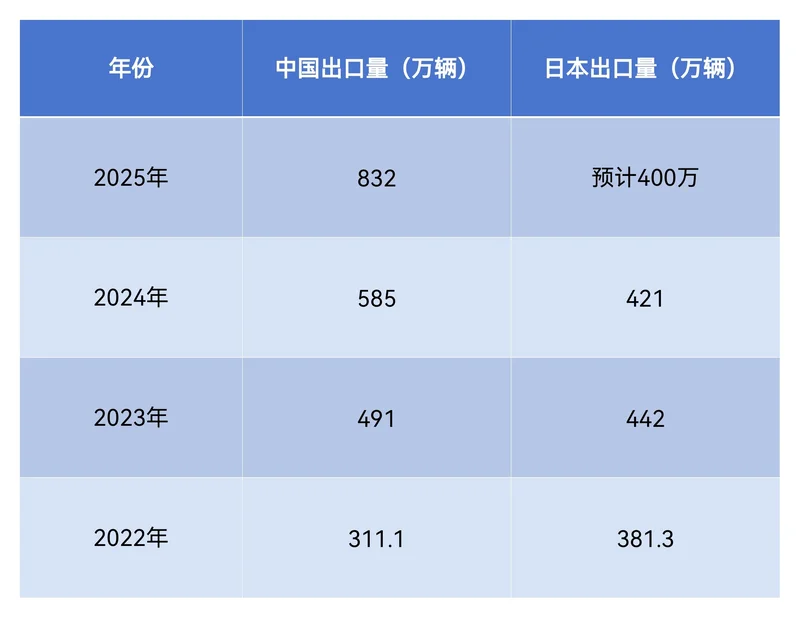 至于2025年日本汽车出口量是多少?我们没有看到具体的数据,但是2025年1到9月份,他们的汽车出口量只有300万辆左右,预计全年的出口量估计也就400万辆左右,这意味着目前中国汽车出口量差不多相当于日本的两倍左右,这说明中国汽车对日本汽车的冲击还是比较明显的。