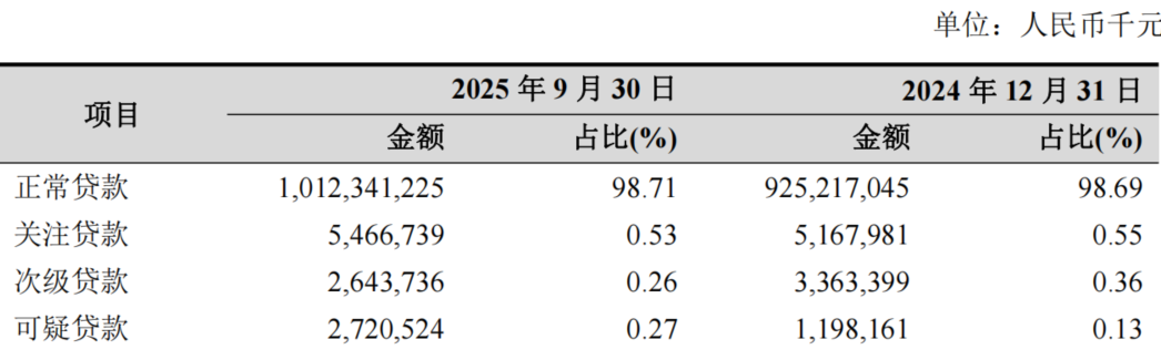 从最新披露的五级分类情况看,杭州银行整体资产质量仍保持稳健,正常类贷款占比略升至98.71%,说明贷款规模扩大的同时并未显著拉高风险;关注类占比从0.55%小幅下降至0.53%,预警资产有所缓和;次级类贷款占比从0.36%降至0.26%,显示部分风险资产得到化解或重分类;值得注意的是,可疑类贷款占比翻倍升至0.27%,反映部分存量问题贷款开始显性化,但规模仍然较小;损失类占比则由0.27%降至0.23%,可能与核销清收力度增强有关。