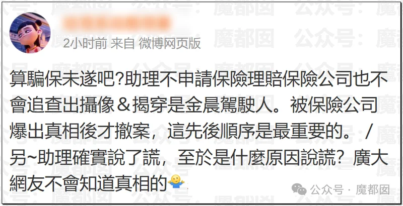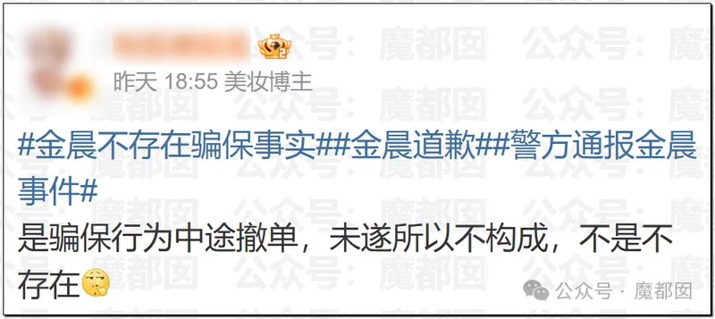 一些懂法的大V也都指出了这点,金晨不是没有骗保,是不成功后撤下了。