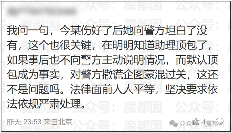 我们更关心的是法律公信力,如果明星违法不处罚,而普通人触一点就要处罚,那么损害的是公信力,这个远比金晨事件本身要严重的多。
