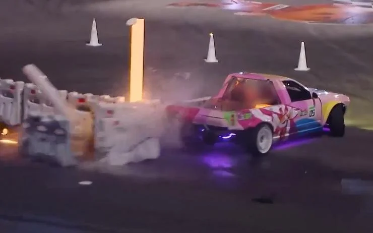 不过,在《风驰赛车手》总决赛中,过弯环节时金晨的车原地“起飞”,一个大甩尾导致车子的后视镜“飞”到了黄景瑜车里。