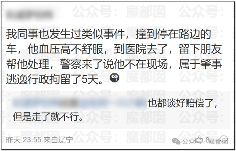 很多网友说了自己经历的事情,只要人不在现场大概率算是逃逸了。