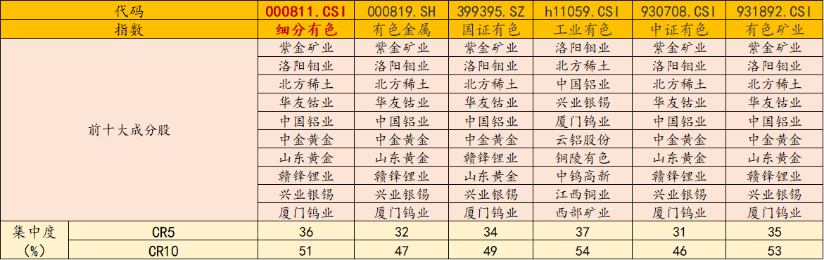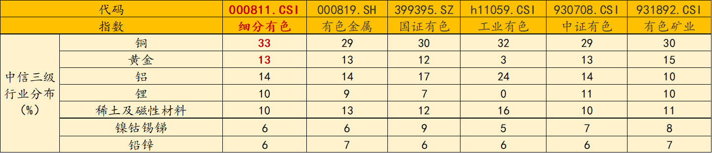 风险提示:基金有风险,投资需谨慎。投资人应当阅读《基金合同》《招募说明书》《产品资料概要》等法律文件,了解基金的风险收益特征,特别是特有风险,并根据自身投资目的、投资经验、资产状况等判断是否和自身风险承受能力相适应。基金管理人承诺以诚实信用、谨慎尽责的原则管理和运用基金资产,但不保证基金一定盈利或本金不受损失。以上基金属于较高风险等级(R4)产品,适合经客户风险承受等级测评后结果为进取型(C4)及以上的投资者。请投资者关注指数化投资的风险以及集中投资于细分有色指数成分股的持有风险,请关注部分指数成分股权重较大、集中度较高的风险,请关注指数化投资的风险、ETF运作风险、投资特定品种的特有风险等。文中提及个股仅为指数成份股客观展示列举,本文出现信息只作为参考,投资人须对任何自主决定的投资行为负责。本文中的任何观点、分析及预测不构成对阅读者任何形式的投资建议。