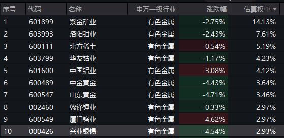 【有色ETF汇添富(159652)标的指数前十大成分股】