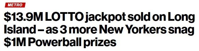 据悉,一名幸运的长岛LOTTO玩家在平安夜赢得了1,390万美元的头奖。同时,本周纽约州还诞生了3名强力球二等奖得主。