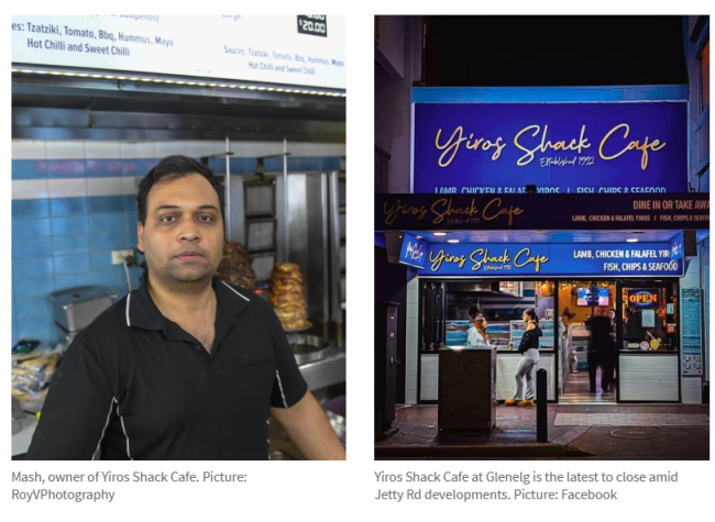 作为Glenelg区Jetty Rd知名餐厅,Yiros Shack Cafe(前身为Makis Yiros)在耗资4000万澳元的街区改造工程导致客源持续流失后,成为最新倒闭的本地商户。店主Mash曾透露,其曾经人气旺盛的希腊卷饼店已连续四个月未能盈利,被迫在"当月内"关停。