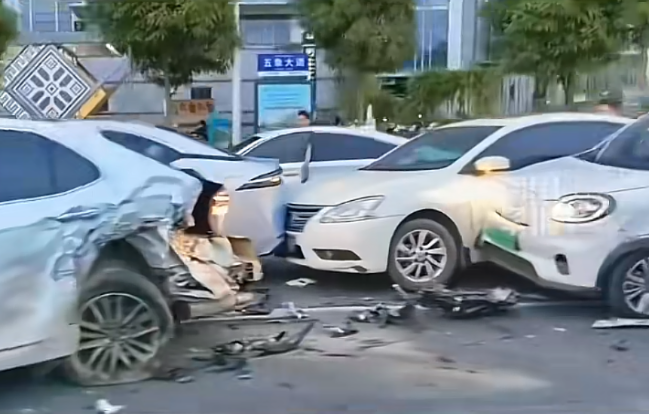 视频车前方的面包车,被撞到左侧方尾部,车辆直接弹起,车头也偏转到右侧车道上。随后,阿维塔又连撞多车,引发连环事故。