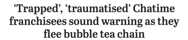然而近日,澳洲知名奶茶品牌Chatime却被大批前加盟商集体“揭短”,其看似光鲜的连锁版图背后,藏着“收割”加盟商、压榨员工的重重黑幕。
