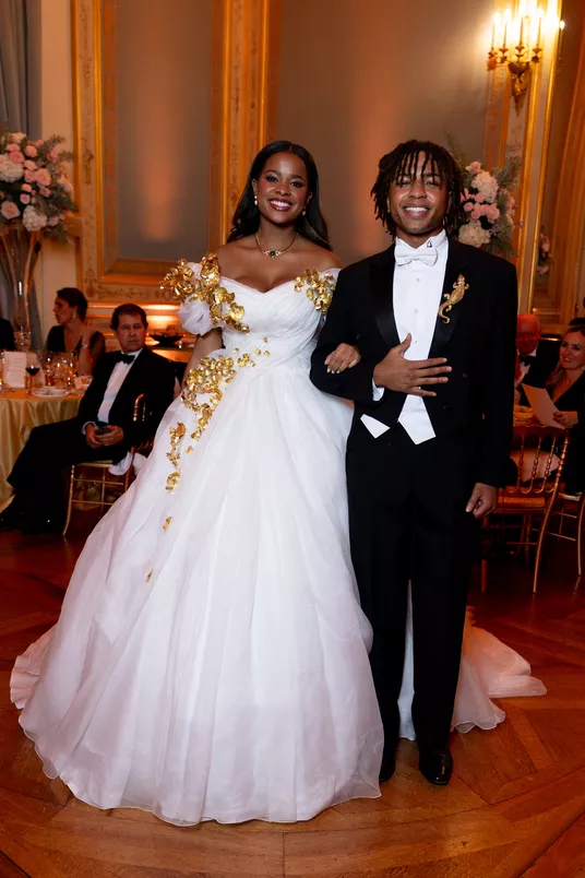 好莱坞女星安吉拉・贝塞特的女儿Bronwyn Vance,以Stéphane Rolland高定白裙亮相,金色花卉与巧克力色肌肤相得益彰,率真性格成为全场焦点。