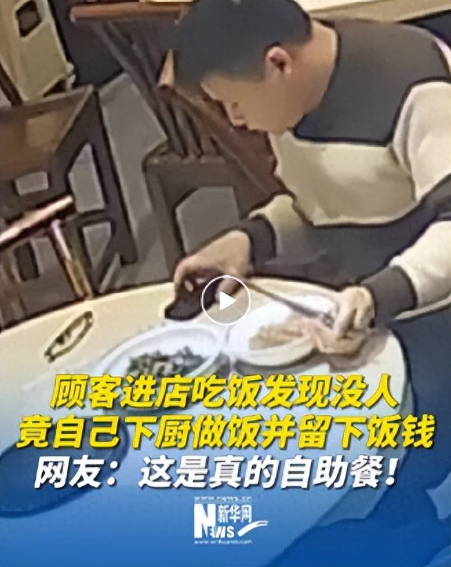 顾客进饭店 发现没人 竟自己下厨做饭 留下饭钱 Source 来源:中国青年报 于 2026年02月01日 11:27 》〉》返回首页 近日,湖南长沙,一餐厅老板接孩子不在店里,顾客进店发现没人后自己进后厨做饭并付款。老板称:“他做了蛋炒饭和辣椒炒肉,按菜单价格给了55元,应该是熟客。” https://www.youtube.com/shorts/RAISyDE8IyU