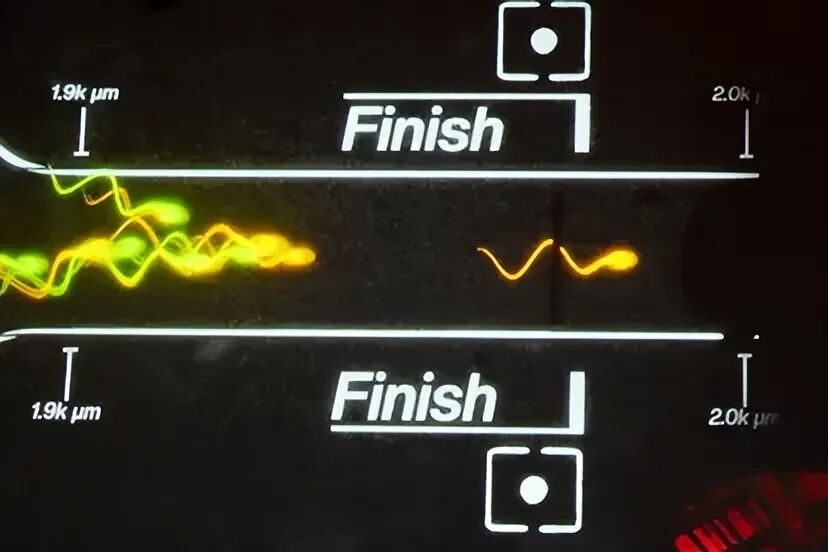比赛获胜的唯一标准就是游速,介于精子本身就很微小,它们要参与的赛道也很迷你,全程仅400微米,并模拟了精子游动时的天然液体环境,在赛道里设置了可控的微电流阻力。