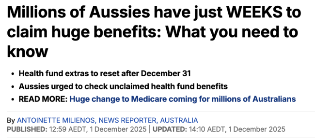 数百万澳洲人只剩下几个星期可以去领取他们的重大医保福利。