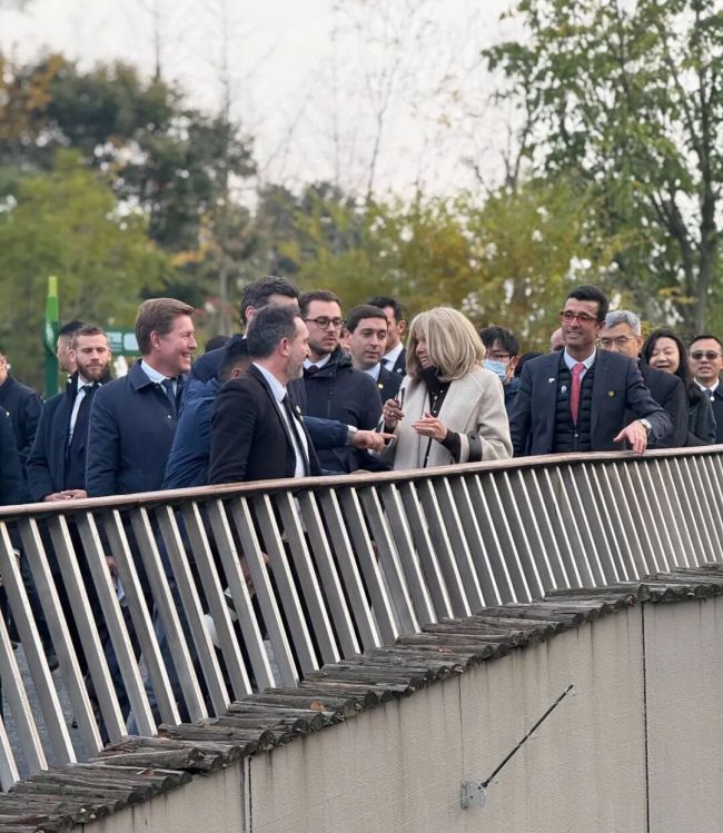 与此同时,第一夫人布丽吉特·马克龙去了另一处“流量担当”——她在中国与一只名叫“圆梦”的大熊猫重逢,这只熊猫出生在法国,如今生活在中国的熊猫基地,媒体用“老朋友团聚”来讲这段熊猫外交故事。