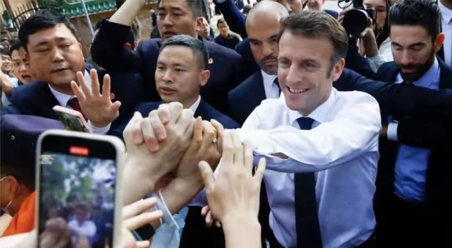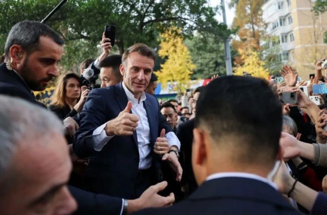 红毯、军乐队、元首会晤、大型大学演讲、热情的年轻人、软萌的大熊猫——三天里,几乎每一个镜头,都在帮他完成一个叙事:法国依然是一个可以与中国平视对话的世界大国;他本人,是这个大国的象征。