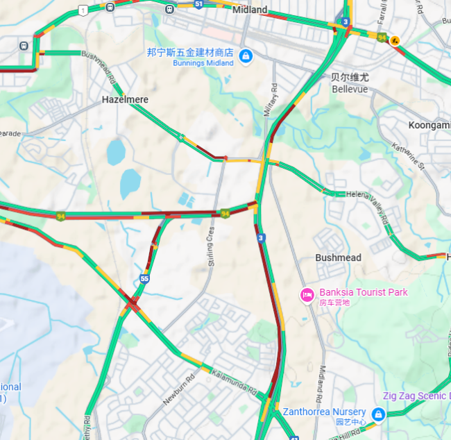 火势发展迅猛,相关部门紧急关闭Roe Highway部分路段以及Great Eastern Highway Bypass,周边交通一度严重拥堵。