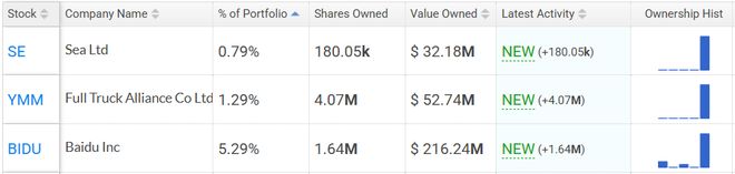 最引人注目的变化是,百度首次出现在HHLR的投资组合中,并迅速跻身第六大重仓股。