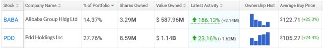 与此同时,该机构继续增持了其长期看好的电子商务巨头拼多多与阿里巴巴,其中拼多多依然稳居第一大重仓股的位置。