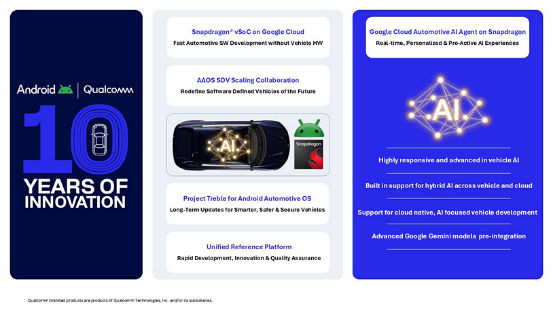 骁龙数字底盘将与谷歌汽车AI智能体、云服务深度集成,采用边云混合架构,结合终端侧即时响应与云端持续进化能力,支持多模态交互与个性化体验。
