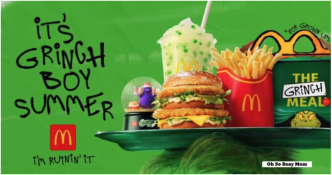 麦当劳推出全新的“Grinch Boy Summer”主题活动,将节日氛围、经典回归款与限定玩具一次性打包推出,吸引大批粉丝关注。本次活动不仅带回备受期待的 Chicken Big Mac,还推出带有绿色主题奶昔和玩具的“成人版开心乐餐”,The Grinch Meal。而面向小朋友与收藏爱好者的全新 Grinch Happy Meal 玩具系列也将同步上市,让这个圣诞季多了几分顽皮与童趣。