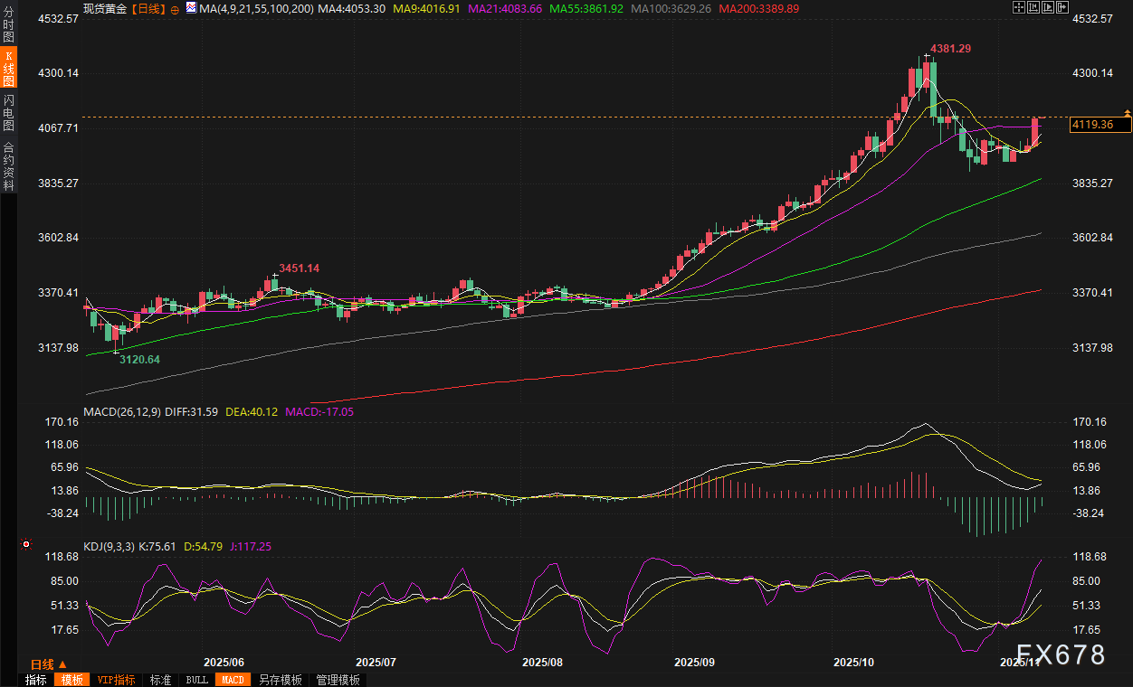 (现货黄金日线图,来源:易汇通)北京时间07:36,现货黄金现报4118.75美元/盎司。