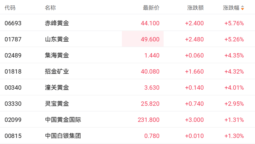 财联社1月27日讯(编辑 胡家荣)受益于隔夜美元指数下挫,港股黄金股多数走强。截至发稿,赤峰黄金(06693.HK)涨5.76%、山东黄金(01729.HK)涨5.26%、招金矿业(01818.HK)涨4.32%、灵宝黄金(03330.HK)涨2.95%。