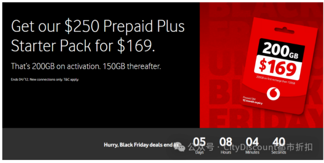 黑五加码!【Vodafone】手机预付卡 劲爆价 + 再送50刀