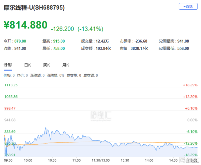 摩尔线程:今日下跌13.41%,全天换手率42.26%,成交额103.84亿元。