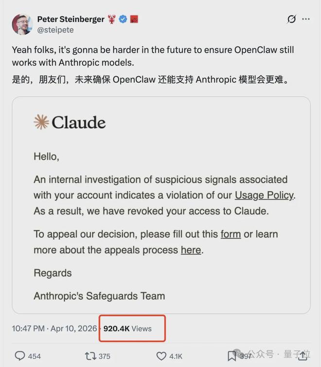朋友们,以后想让OpenClaw继续支持Anthropic模型,会更难了。