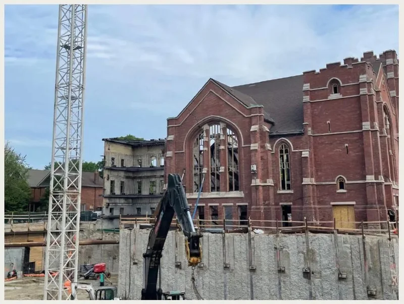 更具警示意义的案例,则在多伦多西区 High Park 附近。一栋规划改建为精品公寓的百年教堂 High Park Alhambra Church,在预售了64套单元后,因资金链断裂于2023年彻底烂尾。