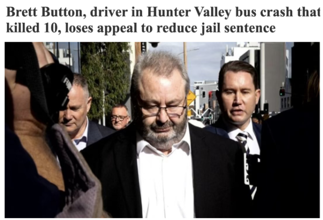 事隔一年多,肇事司机布雷特·安德鲁·巴顿(Brett Andrew Button)的减刑上诉于近日被驳回,原判继续生效。