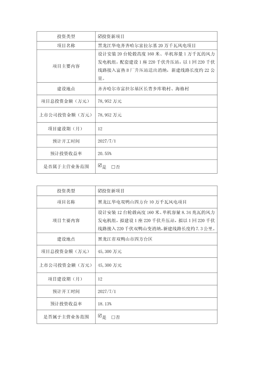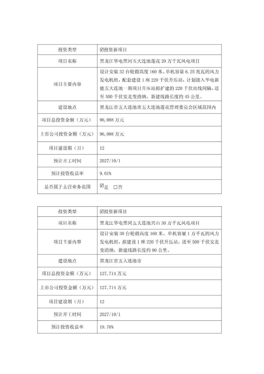 黑龙江华电牡丹江穆棱马桥河30万千瓦风电项目总投资12.71亿元,计划2027年4月开工,2028年4月投产;