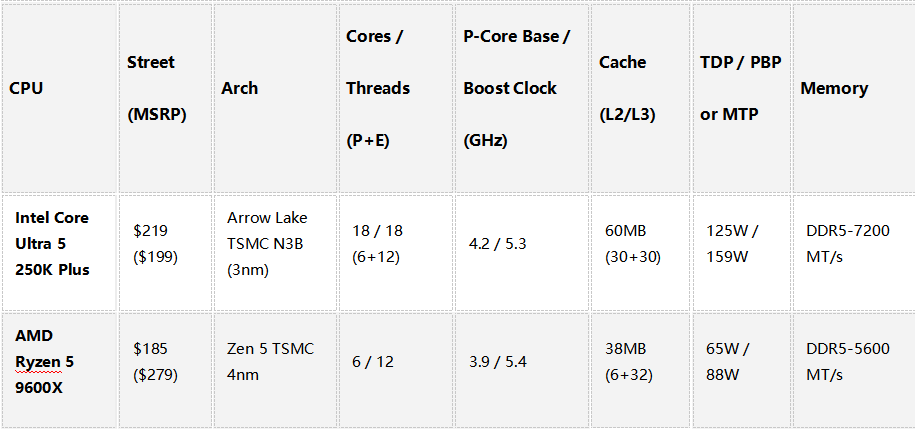 这款定价199美元的新品,直接对位AMD Zen5架构的锐龙5 9600X。Tomshardware从多个维度对两款U进行了详细评测,相信看完之后大家对于这个1500元档位CPU的选择思路会更加清晰。