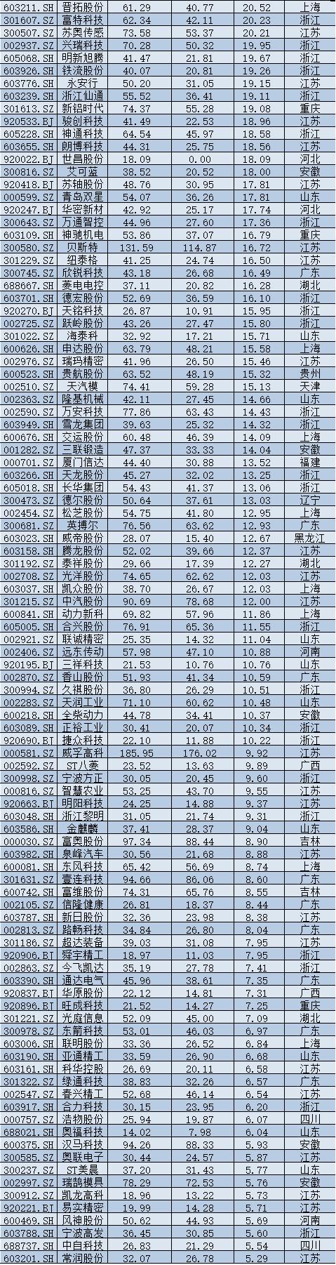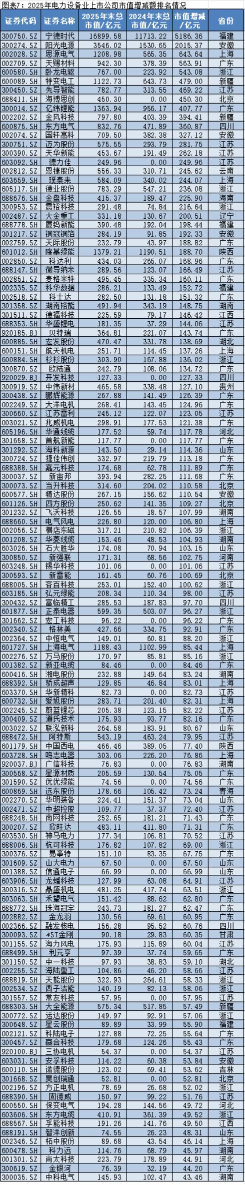 联合动力(301656.SZ)作为新上市公司,市值增长634.83亿元,排名第二,反映出市场对新能源汽车动力系统核心领域的高度关注。