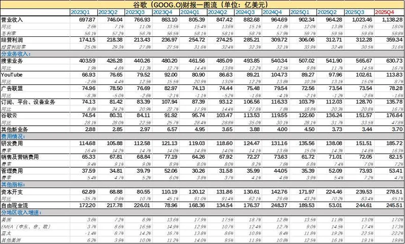 具体的财报一图流如下图所示(单位:亿美元,如无特殊说明,下同):