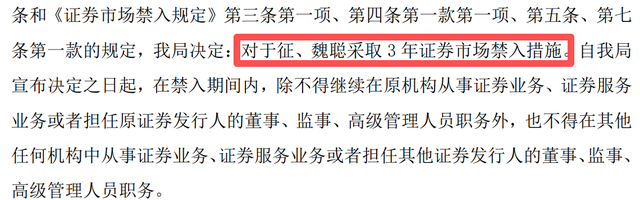 然而,《行政处罚决定书》显示,魏聪系财务造假案直接负责的主管人员,“违法行为情节严重”,已被处以350万元罚款,并被采取3年证券市场禁入措施。