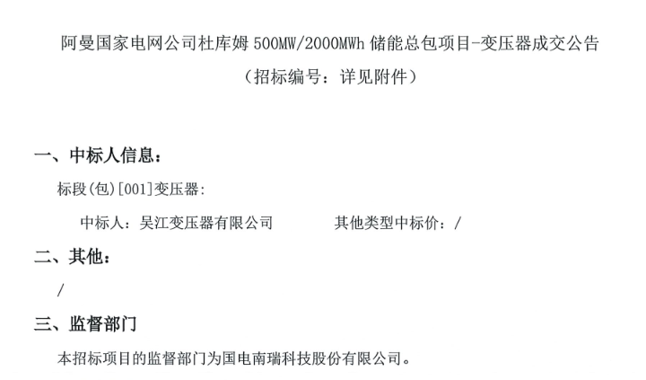 变压器采购中标人为吴江变压器有限公司,为国有企业上海电气输配电集团有限公司控股公司;