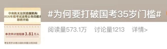就在不久前,国家公务员局发布的公告显示,对报考者的年龄要求从35周岁放宽到了38岁。最近,各地也相继发布政策,将部分事业单位招聘年龄放宽至38岁或43岁。