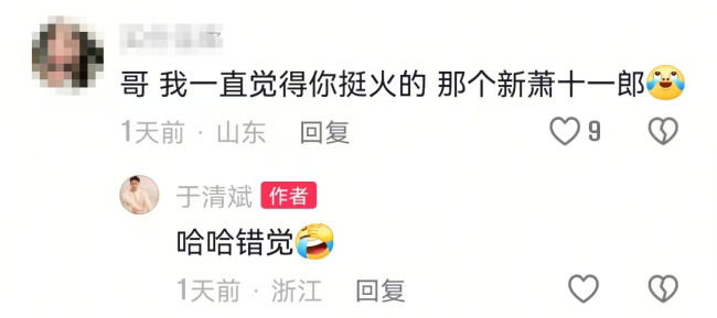 据悉,于清斌曾因《情定三生》《新萧十一郎》等作品被观众熟知,2025年曾转行送外卖维持生计,相关经历引发热议,后来又转型短剧领域。
