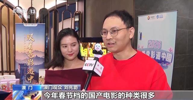 澳门观众 刘兆爵:今年春节档国产电影的种类很多,有动作、武打和各种情景的。里面的场景也会让我们想要去实地看一看祖国的大好河山。通过咱们国产电影,我们也对祖国的自然风光产生了浓厚的兴趣,很想实地去看一看,对于祖国的传统文化也是有了更多的认同感。