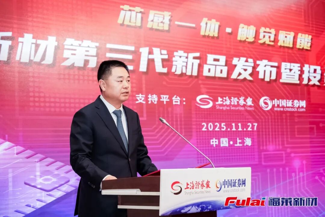 福莱新材董事长夏厚君在会上表示,面对全球人工智能的澎湃浪潮,公司毅然开启了从“功能性涂布材料供应商”向“智能传感解决方案提供商”的延展升级。“电子皮肤”是这一转型的核心载体,它标志着福莱新材成功开辟了以智能感知为代表的“第二增长曲线”,正在释放出日益显著的产业价值。